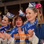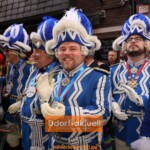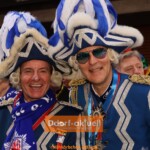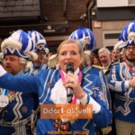 Da der Präsident der KG Regenbogen, Andreas Mauska, ja aktuell als Prinz im Einsatz ist, übernahm es der 1. Vorsitzende, Norman Sandrock, die bunte Schar zu begrüßen. Doch die Sehnsucht des Prinzenpaars war offensichtlich groß, denn weit vor ihrem Auftrittstermin zogen sie unter dem Jubel der Jecken und viel Konfetti ein. Mangels Bühne wird traditionell eine Haushaltsleiter aufgestellt, damit die Tollitäten zu ihrem Narrenvolk sprechen können. Woraufhin die Venetia lachte und meinte „Ich komme mir vor, wie die Freiheitsstatue“. Der Prinz lernte seine Pritsche zu Schätzen, denn damit konnte er seinen Tee von dem Konfetti Schützen, das bei der KG Regenbogen selbstverständlich in Massen dazu gehört.