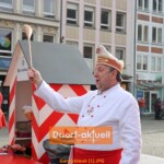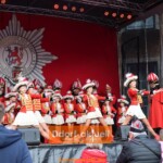 Bereits zum 52. Mal hatte die Prinzengarde der Stadt Düsseldorf zu ihrem großen Gardetreffen eingeladen und ein Dutzend Traditionsvereine aus Düsseldorf, Aachen, Mönchengladbach, Baesweiler und Ratingen waren am Sonntag (23.2.) gekommen. Auf dem Marktplatz vor dem Rathaus hatte Rot-Weiss ihr Biwak mit Verpflegungsständen und Bühne aufgebaut.