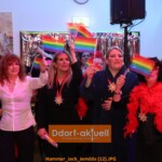 Mit Konfetti und geschwungenen Regenbogen-Fähnchen wurde das Prinzenpaar mit Adjutantur empfangen. Nachdem Prinz Andreas I. eine kurze Einlage als Nummernboy gegeben hatte, brachten sie das ganz Lokal mit ihrem „Düsseldorf Helau“ zum singen.