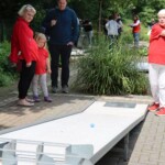 Der Minigolfplatz im Südpark ist für viele Ausflügler eine gute Anlaufstelle. Wer allerdings am Samstagnachmittag (17.5.) die 18-Bahnen bespielen wollte, sah sich einen riesigen Besucherschar gegenüber. Denn die KG Gemeinsam Jeck hatte zu ihrem Sommerfest eingeladen. Traditionell gehört dazu das Minigolfturnier der Karnevalisten. Gleich 27 Teams gingen an den Start und versuchten die Stationen mit möglichst wenigen Schlägen zu absolvieren. Dabei waren deutliche Unterschiede zu erkennen: Diejenigen, denen es auf den Sieg ankam, andere die daraus eine lautstarke Party machten und der Rest, der mit viel Freude dabei war. Spaß hatten alle.