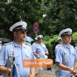 Trotz Regenradar und späterem Abmarsch gab es beim Festzug eine kräftige Dusche von oben