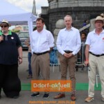 Veranstalter des Tuniers ist die Bürgergesellschaft „Alde Düsseldorfer“, Baas Rolf Lenz hier mit Stadtdirektor Burkhard Hintzsche, Stadtsparkassenvorstand Michael Röttgen und Moderator Thomas Perlick. Foto: Karina Hermsen