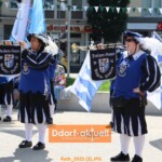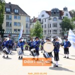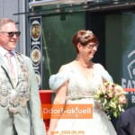 Zum Jubiläum waren nicht nur viele Schütz*innen befreundeten Gesellschaften aus Düsseldorf nach Rath gekommen. Auch an Musikgruppen waren aus Bochum und dem Sauerland angereist. Aus Hückelhoven-Doveren war das komplette Königshaus zu Gast. Für die Zuschauer*innen am Straßenrand war es fast ein wenig schwierig, die „eigenen“ Majestäten zu erkennen, denn es waren viele im Festzug dabei – zu Fuß aus Doveren, in der Rikscha das Kompaniekönigspaar der Gesellschaft Germania und in einer eigenen Kutsche Marc Stümmler und Silvia Klusowski als Kompaniekönigspaar der Gesellschaft Freischütz.