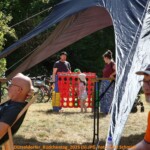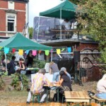 Der südlichste Punkt war dabei die Kulturbud in Wersten, an der Werstener Dorfstraße 161. Dort erwarteten neben leckerer Verpflegung Staffeleien, Megaseifenblasen und ein XXL-Vier-Gewinnt die Gäste. Vier Djs wechselten sich ab und hatten ihr Pult auf dem Dach des Büdchens aufgebaut.