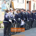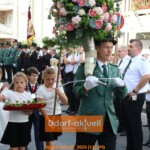 Aber bevor am Sonntag der Höhepunkt für die amtierenden Majestäten mit Festzug und Parade gekommen war, wurde in Volmerswerth bereits am Samstag gefeiert. Die Böllerschüssen am Nachmittag zeigten allen an, dass das Schützenfest beginnt. Im Anschluss an die Schützenmesse hätte eigentlich der traditionelle Fackelzug ziehen sollen, für den die Kompanien phantasievoll Begebenheiten des Jahres mit beleuchteten Darstellungen gebaut hatten. Doch das Wetter machte einen Strich durch die Planungen und so ging es gleich zum Ball ins Festzelt, wo die Band Kärnseife für Stimmung sorgte.