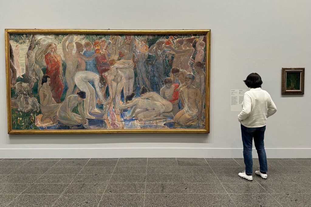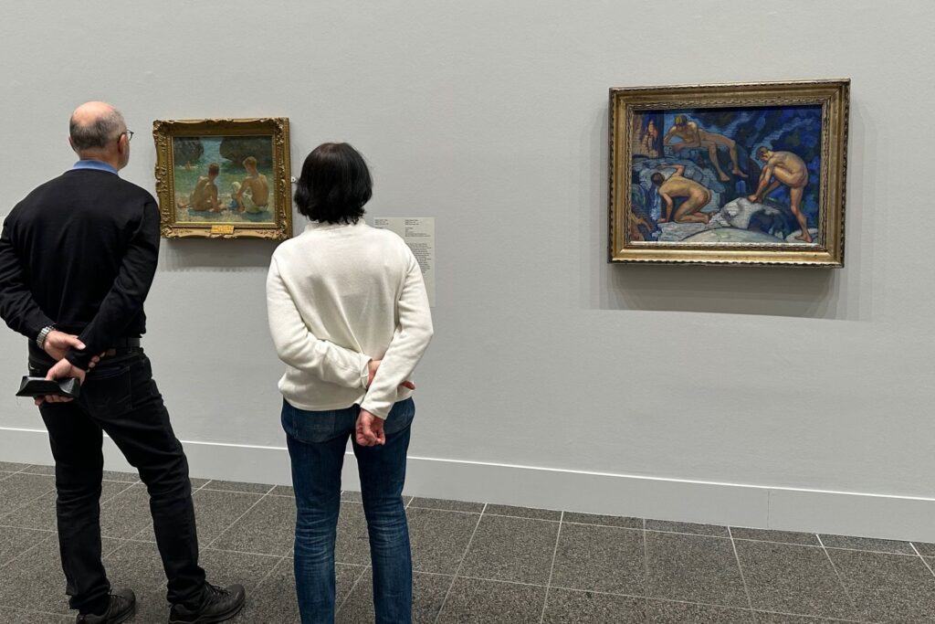 Im Arbeitszimmer von Thomas Mann hing “Die Quelle” von Ludwig von Hofmann (rechts im Bild). Besucher betrachten “The Critics” von Henry Scott Tuke (1927). Foto: bikö