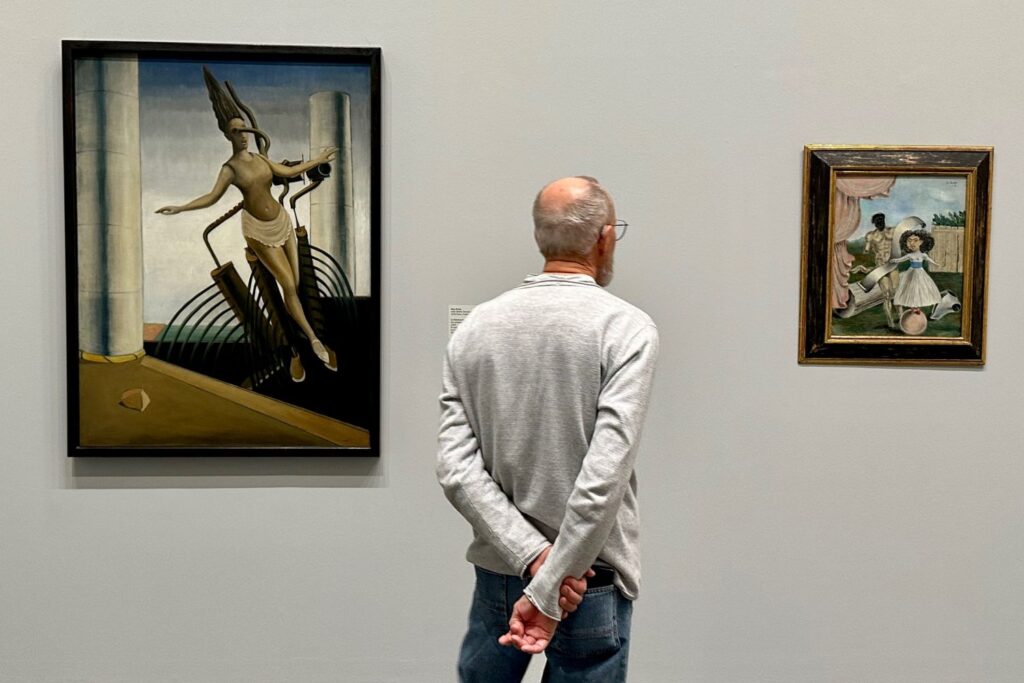Begegnung: Die berühmte “Schwankende Frau” von Max Ernst (1923) hängt neben der “Puppe” der Serbin Milena Pavlović-Barili. Foto: bikö