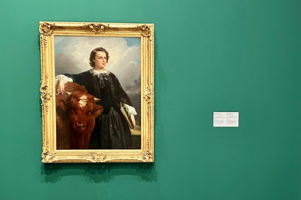Energischer Auftritt: die Tiermalerin Rosa Bonheur mit einem Stier auf einem Porträt, das Edouard Dubufe 1857 von ihr malte. Foto: bikö
