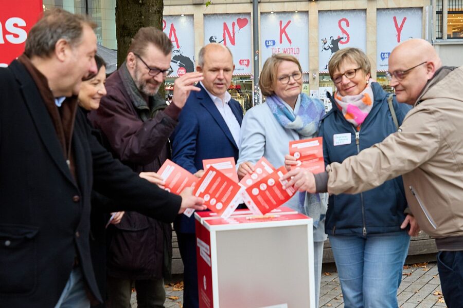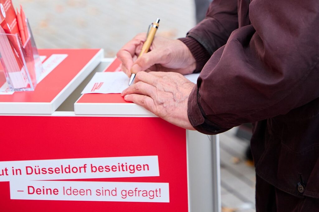 Am Freitag, aber auch im Nachgang sind die Düsseldorfer*innen eingeladen ihre Ideen gegen Armut in eine Sammelbox zu werden. Noch bis zum 10. November stehen an vier verschiedenen Standorten in Düsseldorf die Boxen mit Ideenkärtchen. Die gesammelten Beiträge werden anlässlich des Welttags der Armen am 16. November Vertreter*innen der Stadt Düsseldorf überreicht.