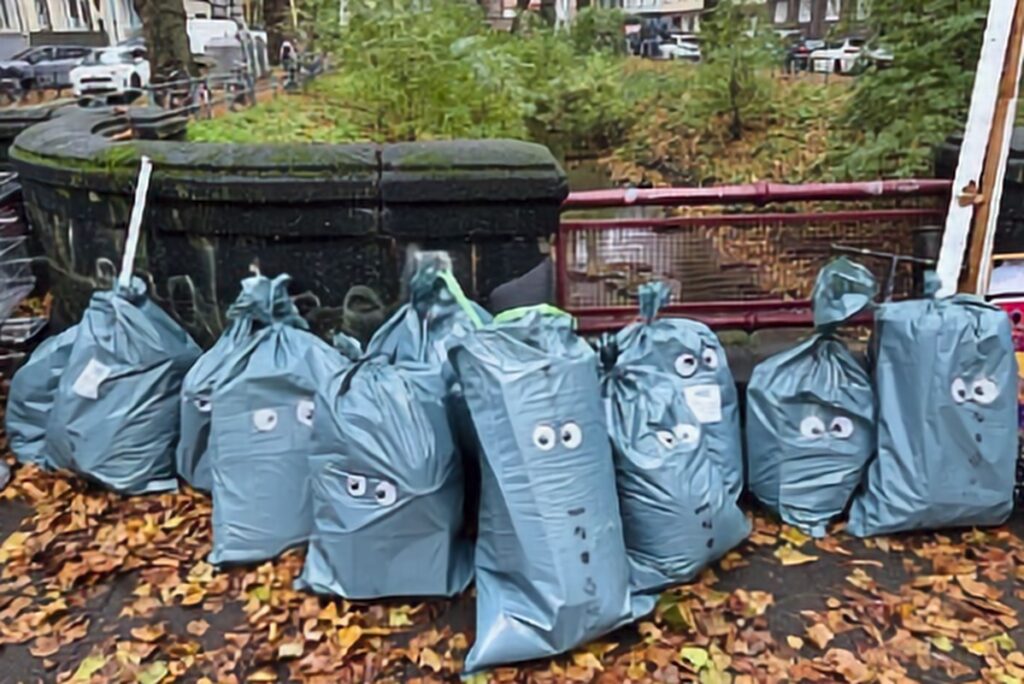 Die Müllgeister von Düsseldorf Bilk wollen nicht gestört werden. Deshalb haben sie sich mit den Regengeistern verbunden. Und fluteten die Premiere des BlockBlocks Cleanup am Samstag (25.10.) mit heftigem Dauerregen und unseligen Temperaturen. Doch da haben die Müllgeister die Rechnung ohne die Hartnäckigkeit der rund 30 Helfer*innen gemacht – darunter zehn Kinder. Wasserdicht verpackt trugen sie binnen zwei Stunden 642,8 Kilogramm Müll zusammen. Und 24 Einkaufswagen, die nun auf ihre Supermärkte verteilt werden müssen.