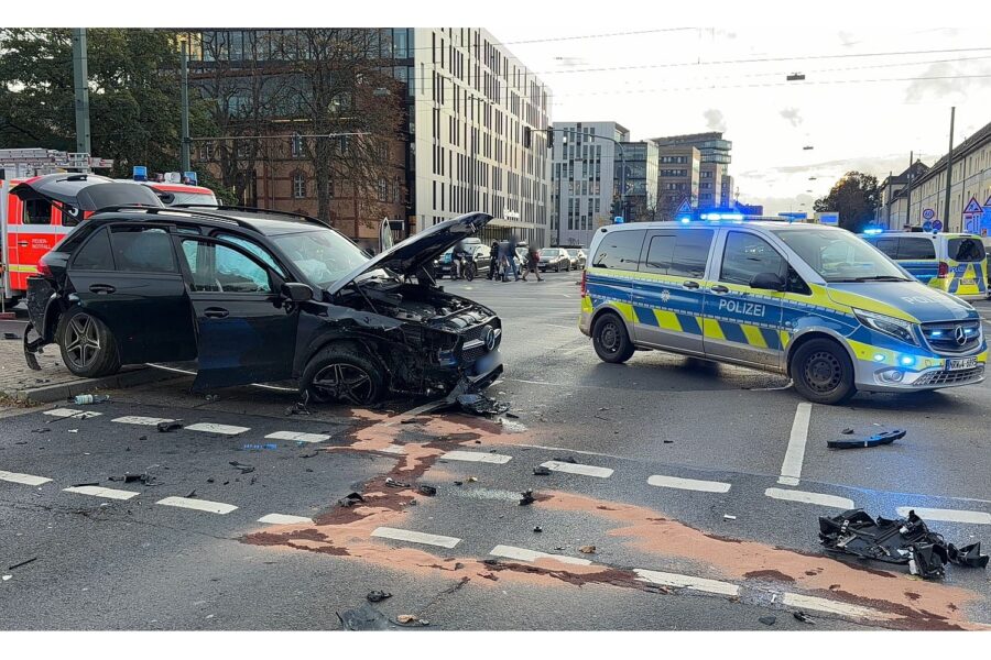 Eine unbeteiligte Fußgängerin erlitt am Freitagnachmittag (24.10.) gegen 17:30 Uhr an der Kreuzung Heinrich-Erhardt- und Ulmenstraße lebensgefährlich Verletzungen.