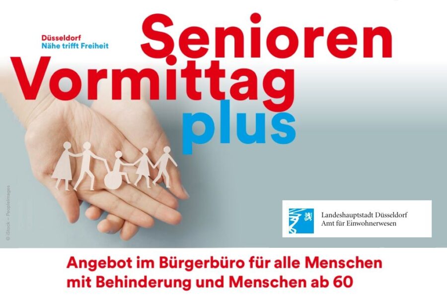 Das Angebot der Stadt Düsseldorf, die Bürgerbüros an einem Vormittag für Menschen ab 60 Jahren und für Menschen mit Behinderung ohne Terminabsprache zu öffnen, erfreut sich großer Beliebtheit. Am Donnerstag, 6. November 2025, findet der nächste „Senioren-VormittagPlus“ zwischen 8 und 12 Uhr statt. Dann können sämtliche Anliegen wie beispielsweise Anträge für Ausweise und Reisepässe, Melde- oder Lebensbescheinigungen, Schwerbehinderten- oder Bewohnerparkausweise sowie Wohnsitzan- oder -ummeldungen, ohne vorherige Terminvereinbarung in neun Düsseldorfer Stadtteil-Bürgerbüros erledigt werden. Vor Ort wird dabei eine Terminmarke gezogen, die dann der Reihe nach aufgerufen und bedient werden. Es kann zu Wartezeiten kommen.