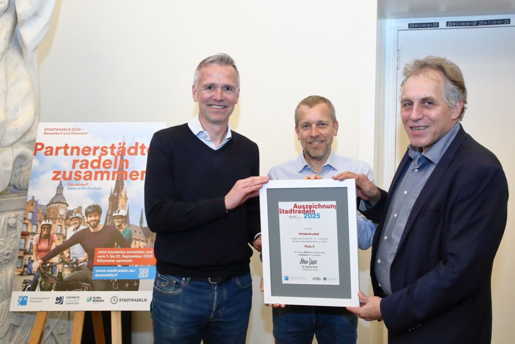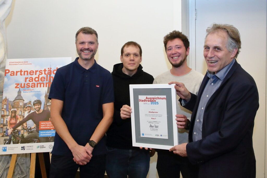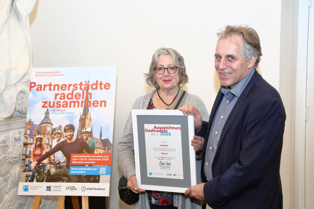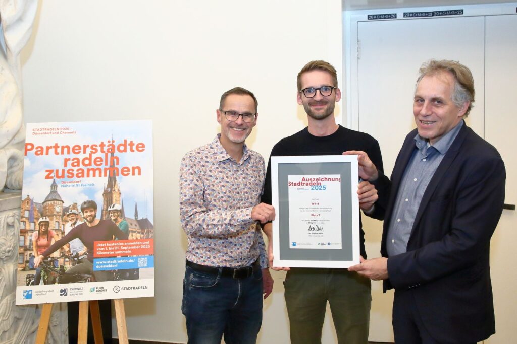 Oberbürgermeister Dr. Stephan Keller konnte zwar nicht selber an der Ehrung teilnehmen, betonte aber: “Stadtradeln ist ein beeindruckendes Beispiel dafür, wie Radförderung, Klimaschutz und Lebensqualität miteinander verbunden werden können. Jahr für Jahr beteiligen sich engagierte Teams, die mit Begeisterung und Teamgeist zeigen, wie nachhaltige Mobilität im Alltag gelebt werden kann. In diesem Jahr sind wir dabei gemeinsam mit unserer Partnerstadt Chemnitz angetreten. Mein besonderer Dank gilt allen, die mit ihrem Einsatz, ihrer Ausdauer und ihrer Freude am Radfahren diesen Erfolg möglich gemacht haben”.