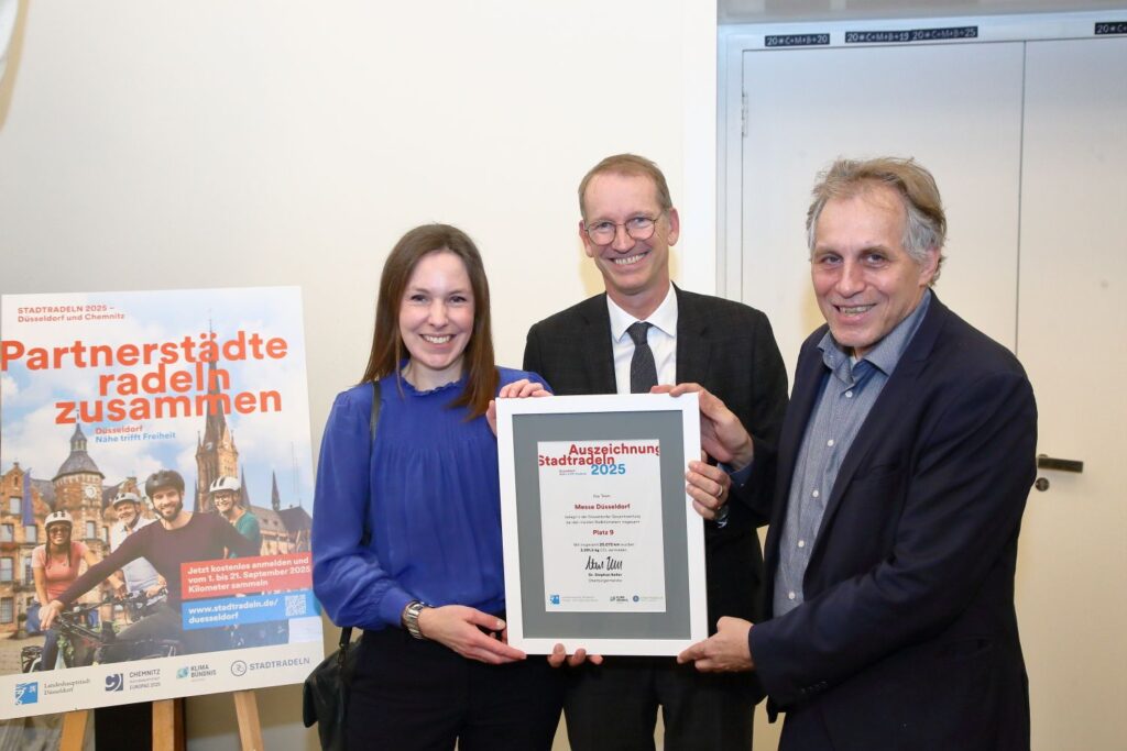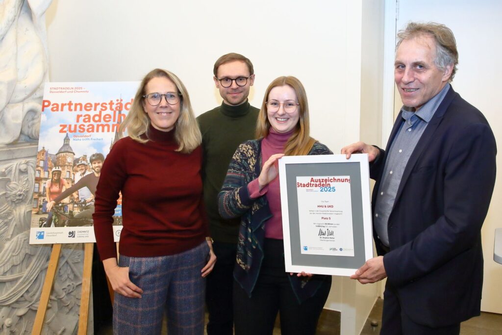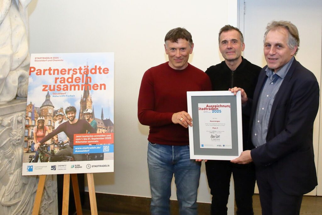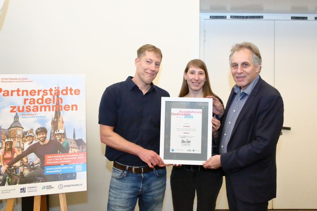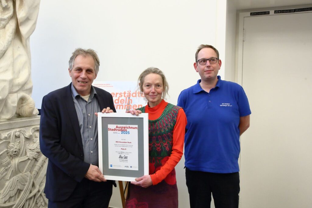 Oberbürgermeister Dr. Stephan Keller konnte zwar nicht selber an der Ehrung teilnehmen, betonte aber: “Stadtradeln ist ein beeindruckendes Beispiel dafür, wie Radförderung, Klimaschutz und Lebensqualität miteinander verbunden werden können. Jahr für Jahr beteiligen sich engagierte Teams, die mit Begeisterung und Teamgeist zeigen, wie nachhaltige Mobilität im Alltag gelebt werden kann. In diesem Jahr sind wir dabei gemeinsam mit unserer Partnerstadt Chemnitz angetreten. Mein besonderer Dank gilt allen, die mit ihrem Einsatz, ihrer Ausdauer und ihrer Freude am Radfahren diesen Erfolg möglich gemacht haben”.