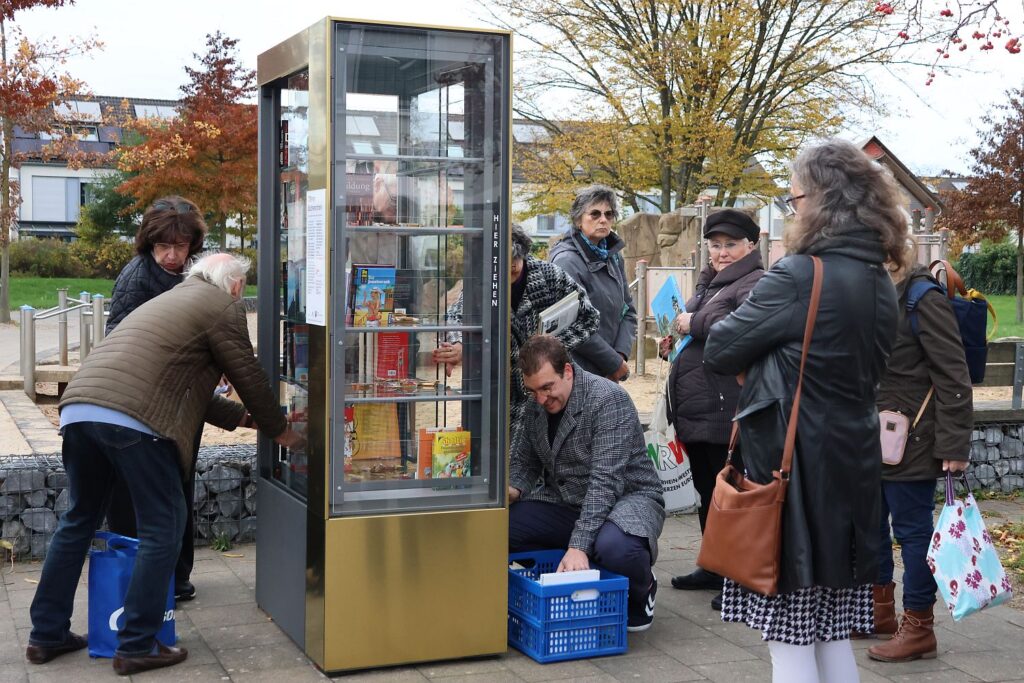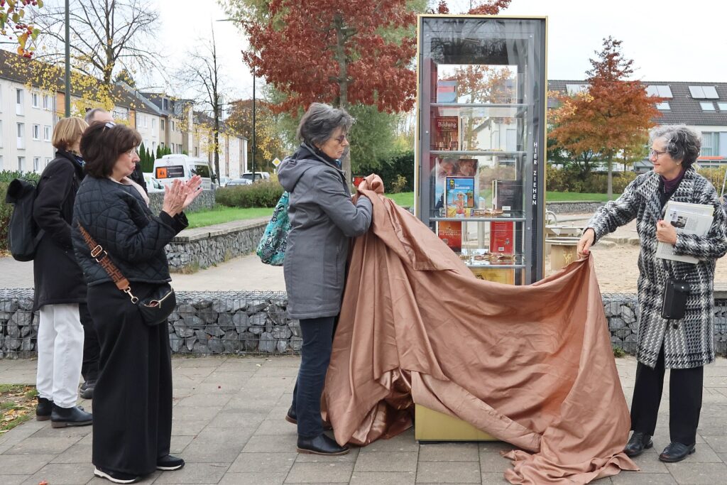 Dabei war es am Freitag ein regelrechter Einweihungsmarathon, denn auch in Lierenfeld an der Reisholzer Straße 34 und in Eller am Gertrudisplatz gibt es jetzt öffentliche Bücherschränke. Die Hoffnung ist groß, dass sie als Orte des Gebens und Nehmens angenommen werden und sie sich – wie an vielen anderen Standorten – als Treffpunkt entwickeln, an dem die Menschen ins Gespräch kommen.