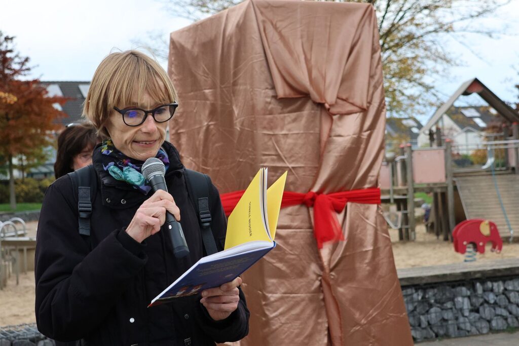 Bevor die Patinnen den Schrank feierlich enthüllten, lobte Bezirksbürgermeisterin Dagmar von Dahlen, die Geschwindigkeit, mit der gleich drei Bücherschränke im Bezirk 8 realisiert wurden. Der Beschluss war von März und nur rund sechs Monate später kommen die Bürger*innen bereits in den Genuss.
