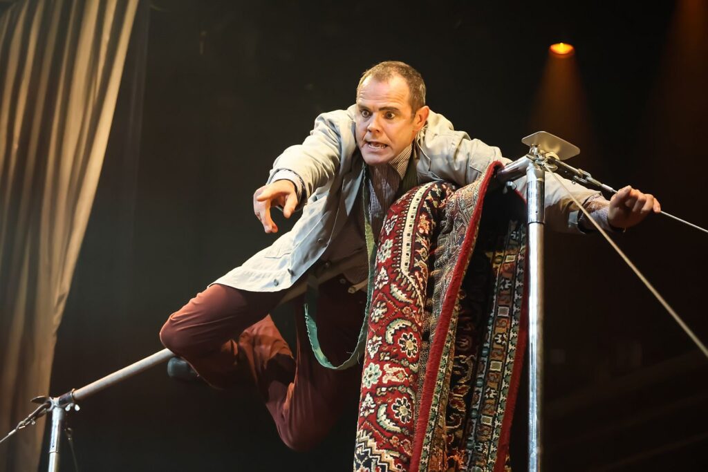 Das ein Fahrrad über die Bühne des Apollo fährt, hat es schon gegeben. Aber Oskar und Felipe schweben mit ihrem Aerial Bicycle in luftiger Höhe und präsentieren akrobatisch eine Geschichte voller Emotion, Stärke und Eleganz. Jede Bewegung zeigt die besondere Verbindung der beiden Akrobaten, die ein Sinnbild für Freundschaft, Nähe und Magie ist.
