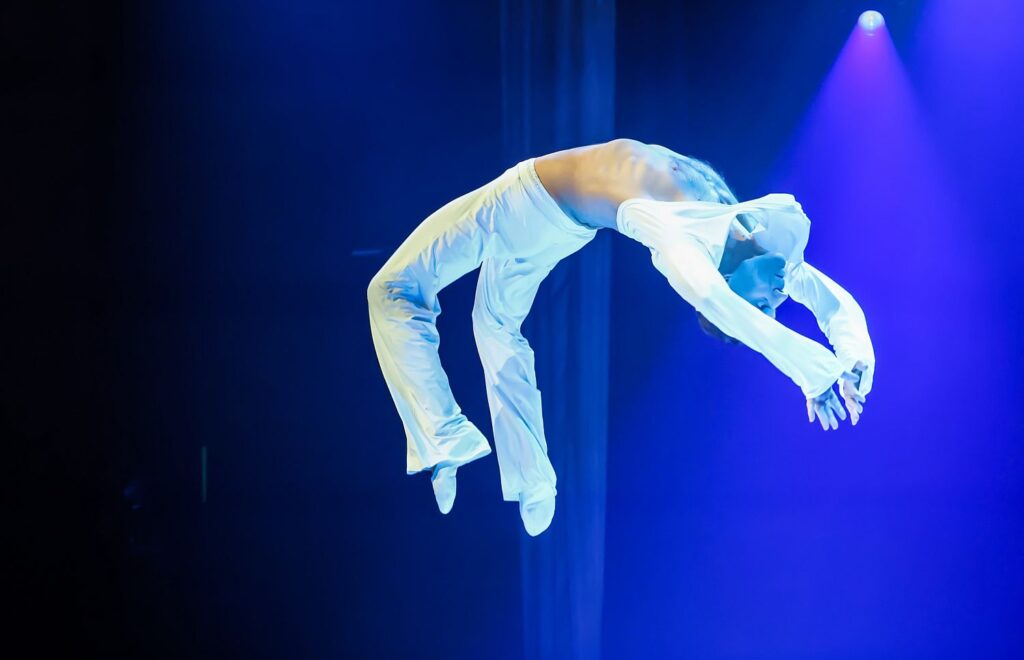 Anatoly Zalevsky zählt zu den herausragendsten Equilibristen unserer Zeit und davon können sich auch die Gäste der Show überzeugen. Er balanciert den eigenen Körper auf den Händen und formt in fließenden Bewegungen beeindruckende Figuren.