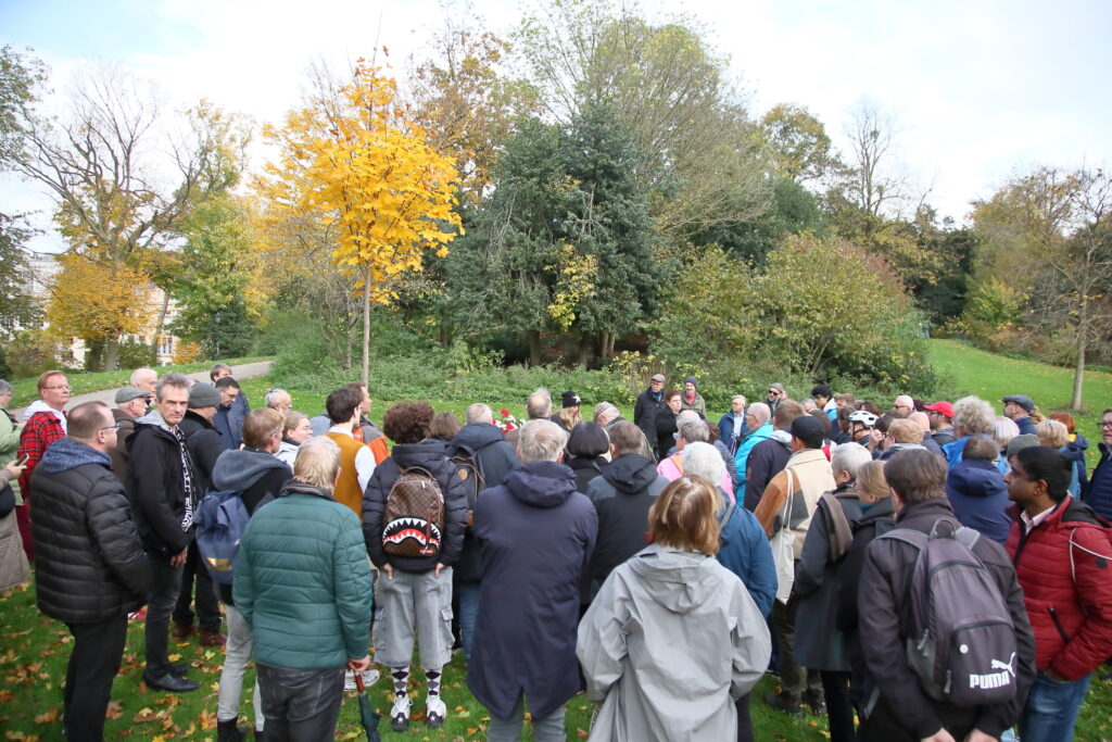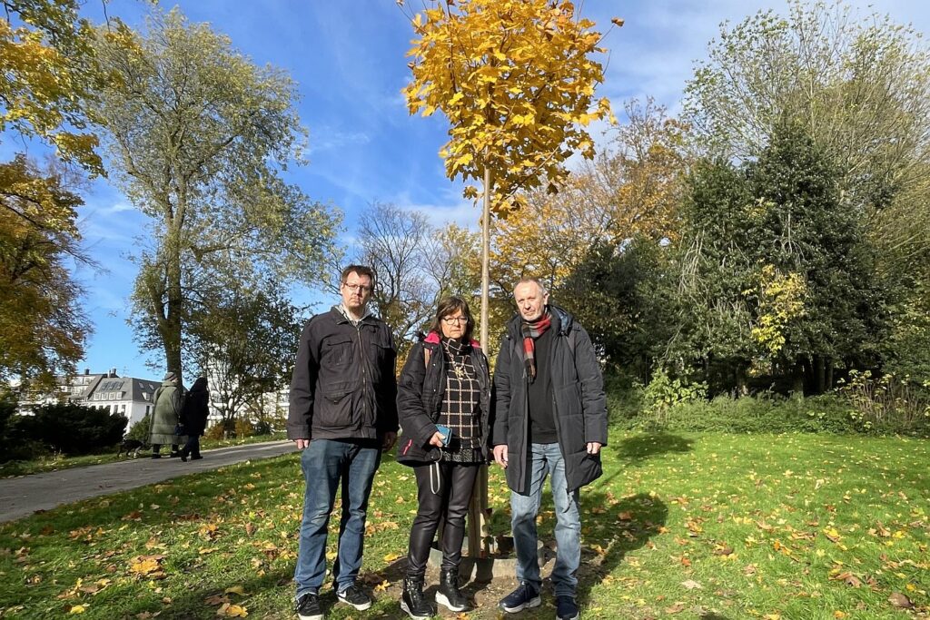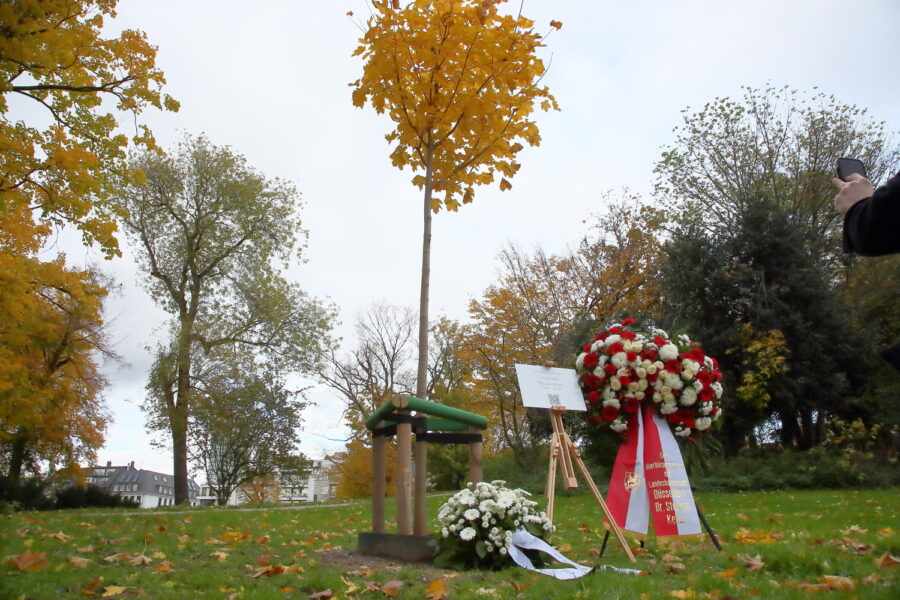 Die LGBTIQ+ Community legte am Sonntag (2.11.) einen rein weißen Kranz an fast der Stelle nieder, an der Siegfried Strukmeier am Abend des 2. November 1995 ermordet wurde. Die Stadt und Oberbürgermeister Dr. Stephan Keller trugen einen in rot und weiß gehaltenen Kranz bei. Und seit kurzem steht dort ein Spitzahorn, dessen Laub im Herbst goldrot leuchtet. Das Gartenamt hat ihn gepflanzte, um an die Greueltat und an das damit verbundene Vermächtnis Siegfried Strukmeiers zu erinnern. Demnächst wird es auch eine Gedenkplakette geben.