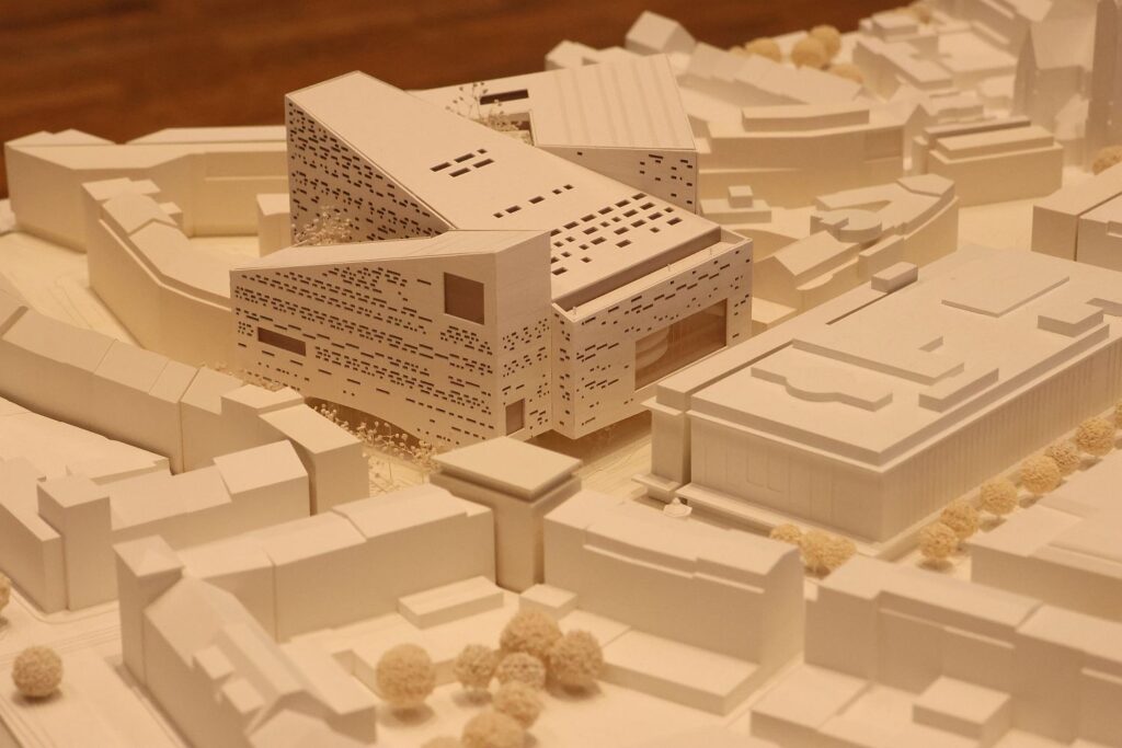 Das Modell des Gebäudes, das aus verschiedenen Einheiten besteht und zahlreiche, unterschiedlich große Fenster haben wird