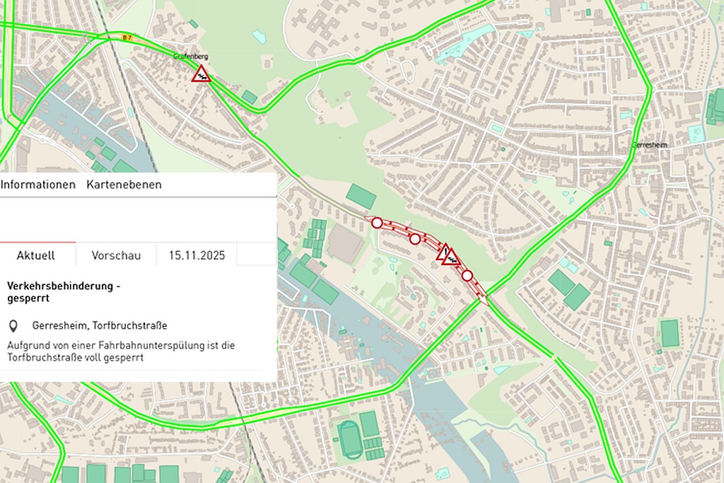 Der Schaden soll schnellst möglich behoben werden, Foto: Screenshot opendata, vtmanager.duesseldorf.de