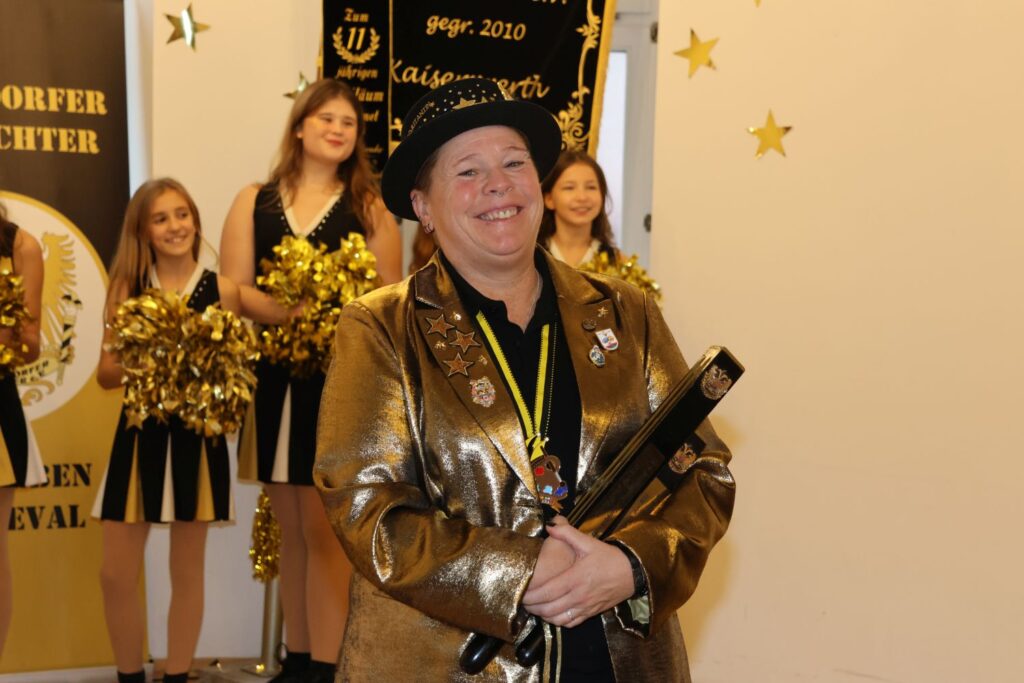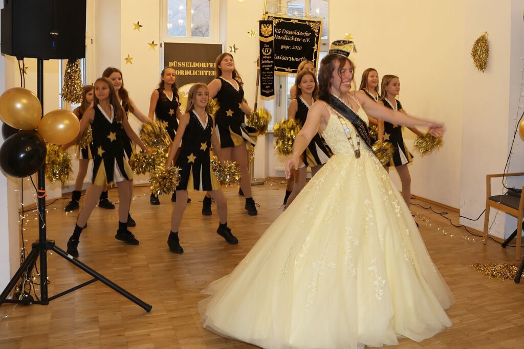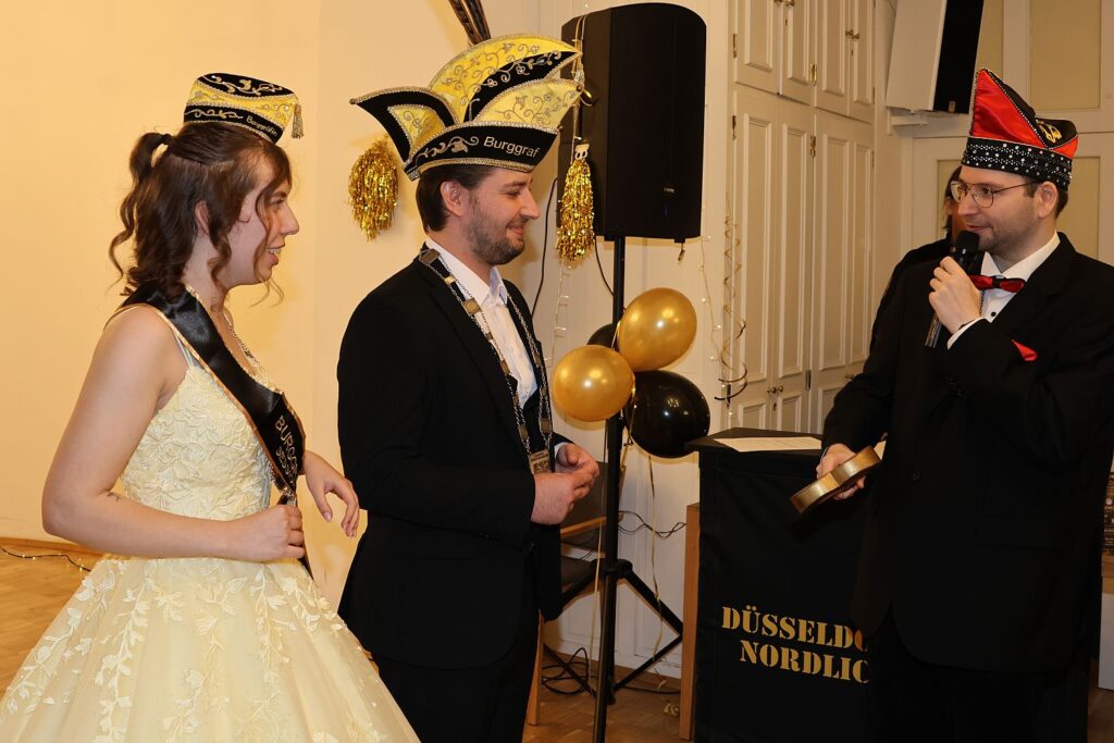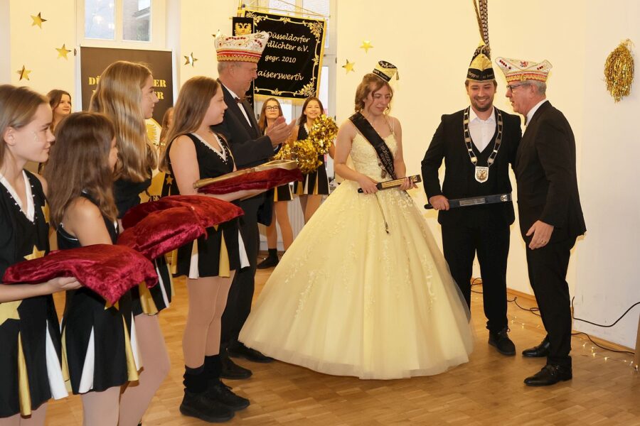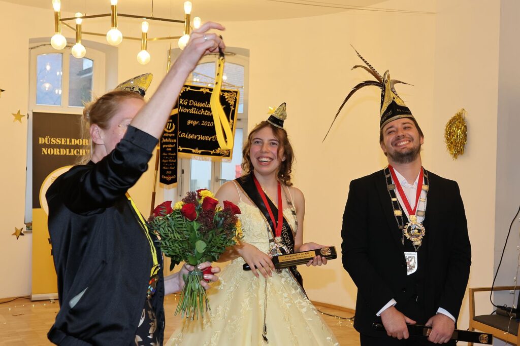 Und auch die zukünftige Burggräfin sei eine echte Kanrevalsmaus, führte Vobis aus. Sie sei wahrscheinlich schon im Kanrevalskostüm auf die Welt gekommen und genoss bei den Aquilas beim Showtanz die Bühnenpräsenz. Schon damals wollte sie Kinderburggräfin werden – ein Amt, dass es bis heute nicht gibt. Aber nach einigen Jahren in Österreich kehrte sie Ende 2024 nach Düsseldorf zurück und konnte endlich ihren Traum erfüllen.
