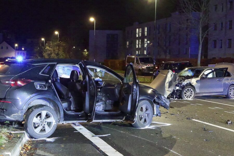 Laut Zeugenaussagen für ein mit drei Personen besetzter BMW auf der Torfbruchstraße Richtung Heyestraße. Ihm kam ein 54-Jähriger mit seinem Opel entgegen. Auf Höhe der Sichelstraße kollidierte der BMW mit seiner Front seitlich im Bereich des Kofferraums des Opels.