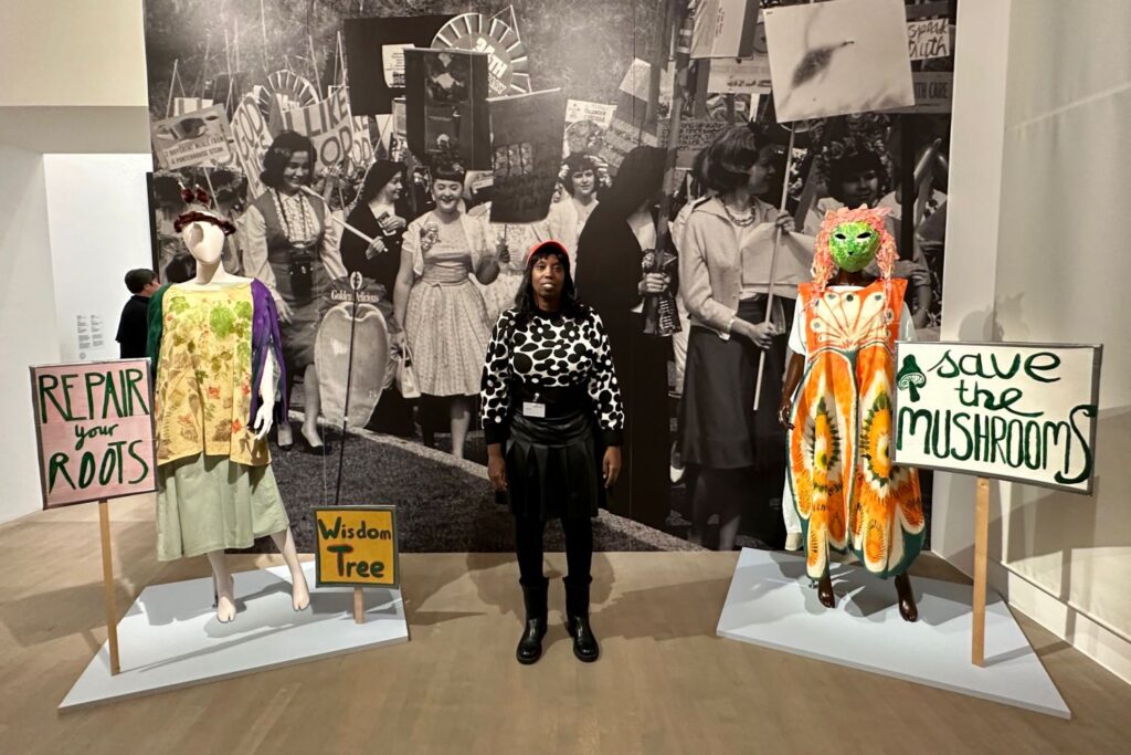 Morgenluft also. Die sucht auch Grace Ndiritu, eine Engländerin mit kenianischen Wurzeln, die sich als Schamanin versteht. Museen, glaubt sie, liegen im Sterben, man müsse sie zu Orten kollektiver Besinnung machen. Deshalb soll man sich die Schuhe ausziehen und in einem „Protest Room“ eine aufsässige Meditation versuchen. Auf einem Laufsteg werden zudem Kostüme eines „Pflanzentheaters für Pflanzenleute“ gezeigt, die in einem Workshop in Schottland entstanden und zu einer lustigen Demo führten.