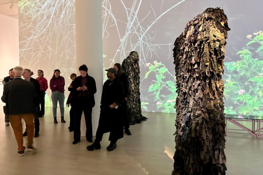 „Grund und Boden – Wie wir miteinander leben“: bis 19. April 2026 im K21 Düsseldorf, Ständehausstr. 1. Geöffnet Di.-So. 11 bis 18 Uhr. Eintritt: 14 Euro, frei für Jugendliche bis 18 Jahre. Aufgrund eines Zuschusses der Deutschen Postcode Lotterie ist der Eintritt an jedem Freitagnachmittag von 15 bis 18 Uhr für alle frei. Der Katalog ist im Hatje Cantz Verlag erschienen und kostet 24 Euro. Am Sonntag, 29. November, gibt es einen Aktionstag zum Thema „Koloniale Kontinuitäten – Alternative Ökonomien – Globale Gerechtigkeit“ mit Vorträgen, Talkshows, Kleidertauschparty und Führungen. www.kunstsammlung.de