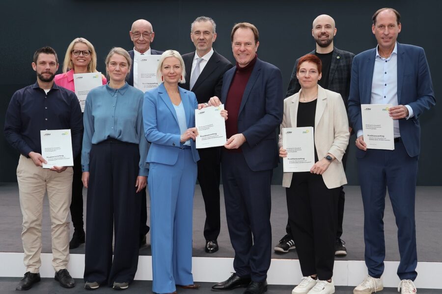 Deutlich schneller als noch vor fünf Jahren haben sich die Vertreter*innen von CDU und Bündnis 90/Die Grünen nach der Kommunalwahl auf ein gemeinsames Vertragswerk verständigt. Am Freitag (28.11.) wurde an den letzten Formulierungen gefeilt und am Montag (1.12.) stellten die Parteispitzen ihr Ergebnis im Euref-Campus der Presse vor. 57 Seiten hat der Koalitionsvertrag – im Unterschied zu dem Vertrag vor fünf Jahren, der lediglich ein Kooperationsvertrag war. Was sich für den Laien ziemlich gleich anhört, beinhaltet einen wichtigen Unterschied. Denn mit dem jetzt erstellten Koalitionsvertrag verpflichten sich beide Parteien einheitlich im Rat aufzutreten und abzustimmen, beim Kooperationsvertrag war dies lediglich eine Empfehlung. Sowohl die CDU als auch die Grünen werden ihre Mitglieder am 10. Dezember um Zustimmung bitten.