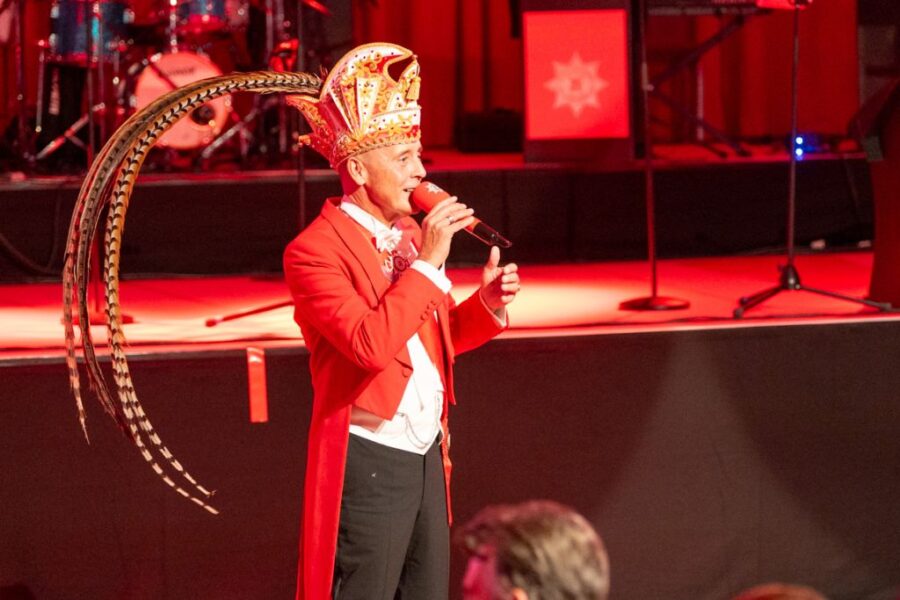 Lediglich unterbrochen vom emotionalen Auftritt von Heinz Hülshoff mit seinem „Düsseldorf Lied“ und später dem Einzug der Prinzengarde samt Prinzenpaar. Für Prinz Marcus und Venetia Nicole einer der wenigen Abende, an denen sie nicht noch diverse weitere Auftritte zu absolvieren haben, sondern im Kreis der Prinzengarde der Stadt Düsseldorf mitfeiern können. Zuvor stand aber noch das traditionelle Abschreiten des Prinzen vor der Garde auf dem Programm, inklusive der Inspektion der Uniformen.