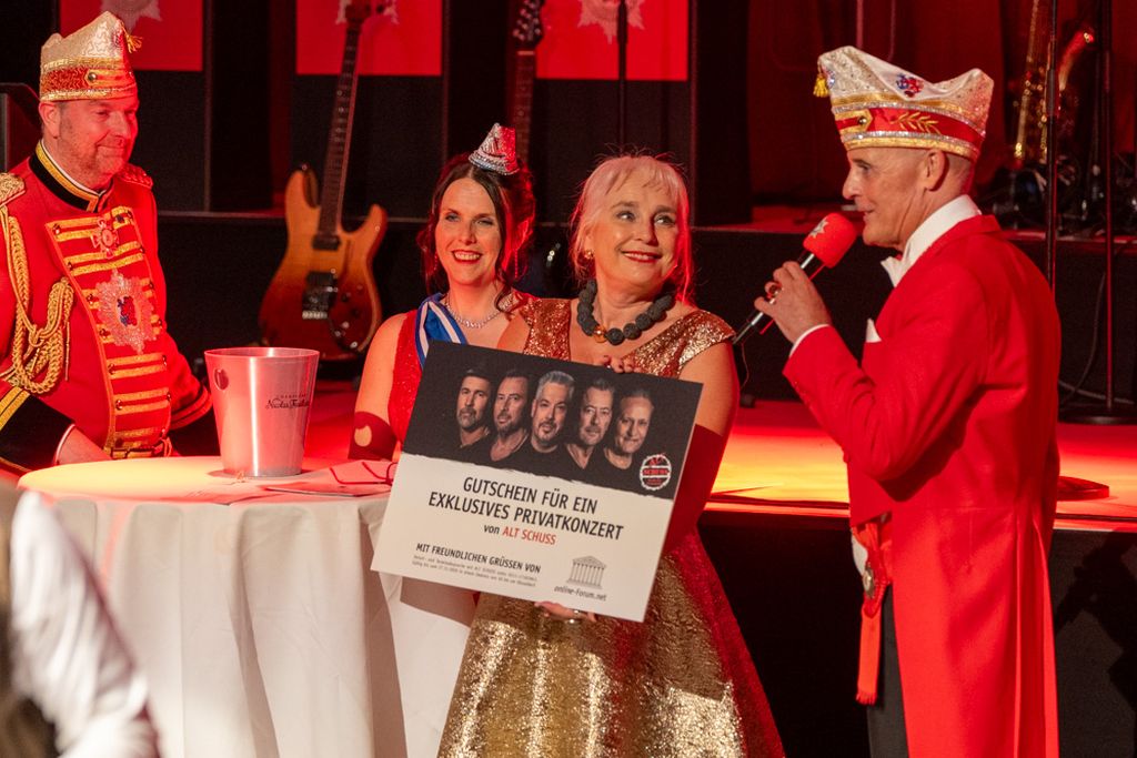 Mit Spannung wurde die Tombola erwartet, denn dabei gab es zahlreiche hochwertige Preise zu gewinnen. Venetia Nicole machte als Losfee unter anderem die Gewinner*innen von Privatkonzerten der „Swinging Funfares“ und „Alt Schuss“ sowie eines handgefertigten Designerkleid des Modehauses Carouge Couture, ergänzt durch zahlreiche weitere exklusive Gewinne, glücklich.