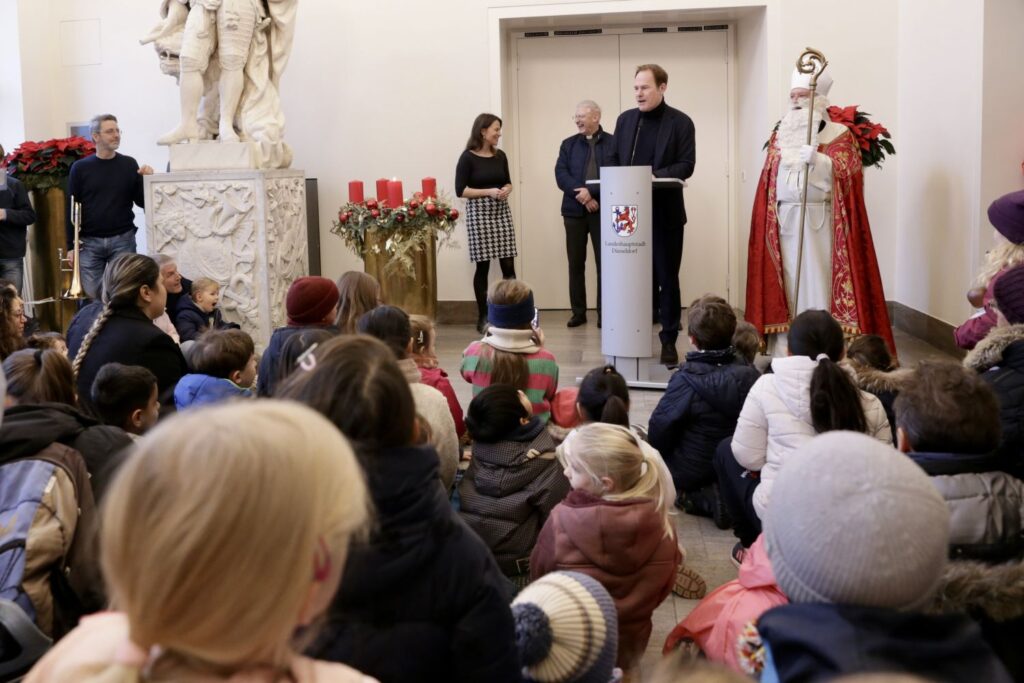 Im Jan-Wellem-Saal empfing Oberbürgermeister Dr. Stephan Keller den Nikolaus, Stadtdechant Heidkamp und die Kinder