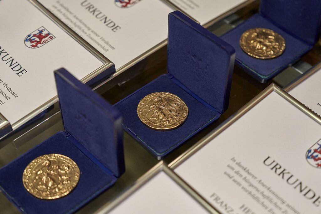 Zur Ehrung gehört der Martinstaler und eine Urkunde, Foto: Stadt Düsseldorf, Claus Langer