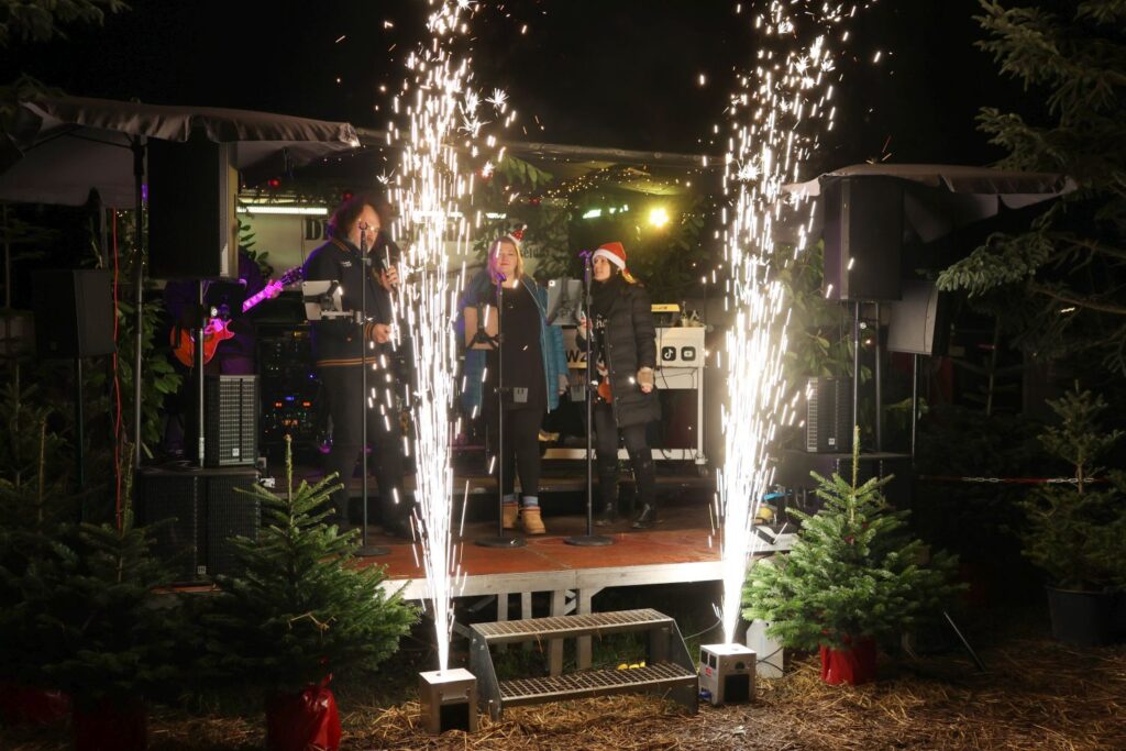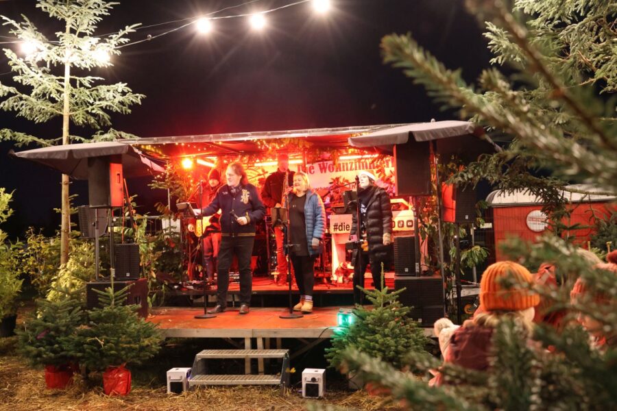 Am Freitagabend sorgte die Wohnzimmerband Düsseldorf mit ihrer flotten Musik für beste Stimmung bei der Nikolaus-Party in Stoffels Weihnachtsdorf. Bereits in den vergangenen Jahren rockte die Band die Tannenschonung und freut sich schon auf ihren nächsten Auftritt beim Weihnachtssingen.