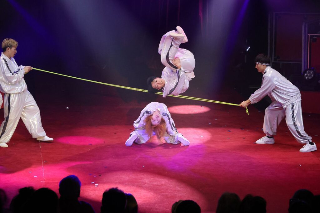 Nicht weniger spektakulär war die anschließende Show der Haribow Crew, die das Spiel mit den Seilen perfektioniert haben. Double Dutch, heißt die Kunst, bei der die jungen Akrobaten sich zwischen zwei Seilen bewegten. Die energiegeladenen Show bestand aus Tanz, Akrobatik und rasanten Sprüngen, bei denen sich die fünf Tänzer*innen immer wieder abwechselten.