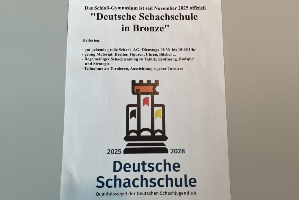 Das Schloßgymnasium ist offiziell Deutsche Schachschule in Bronze