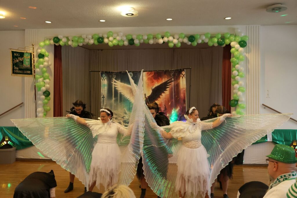 Begeistert waren die Karnevalisten im Saal auch vom Showtanz der KG Heljens-Jecken aus Heiligenhaus. Und nicht nur sie waren neu in Düsseldorf. Auch die Tanzgarde von Grün Weiß Langenhorst aus Velbert passte nicht nur farblich perfekt ins Programm. Sie zeigten ihren Garde- und Showtanz und so manchen Gast im Saal merkte sich den Namen, denn sie boten tolle Tänze.