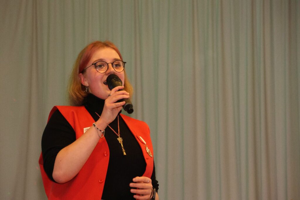 Zwischendurch rockten die Swinging Funfares den Saal und auch bei Et Nina war mitsingen und schunkeln angesagt. Nina gehört zur Hoppediz-Wache und den Pänz en de Bütt und begeistert mit traditionellen Karnevalsliedern. Prinz Mirko I. von Dä Stolz von Odebach unterstützte sie und schlug die dicke Zing.
