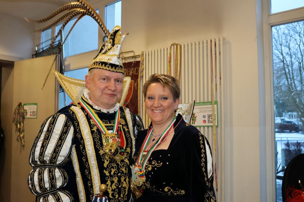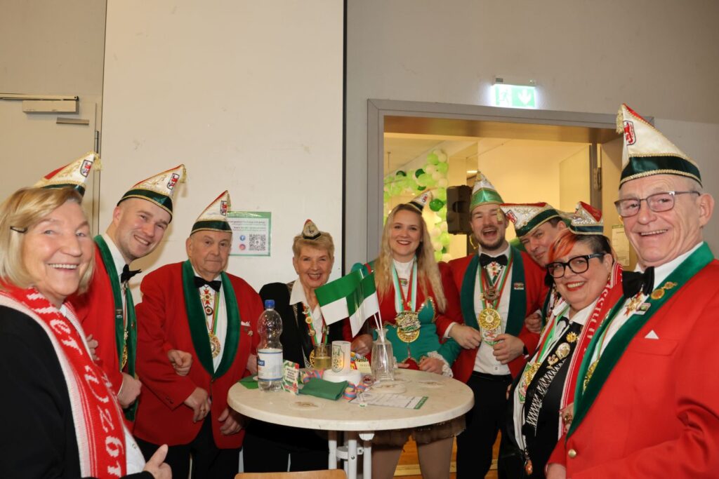 Der Verein hatte in buntes Programm vorbereitet, das mit dem Einzug der Jrön Wisse begann und von Präsident Klaus Use moderiert wurde. Den Auftakt machte Rainer Lieverscheid, der auf die karnevalistischen Bühnen Düsseldorfs zurückgekehrt ist. Nach dem Auftritt der Schloßturmgarde kündeten die RhytmikFunfaren aus Eller den Besuch des Prinzenpaars an. Für Prinz Marcus I. und Venetia Nicole war es der Auftakt in 2026 und beide machten deutlich, wie sehr sie sich auf die Session freuen.