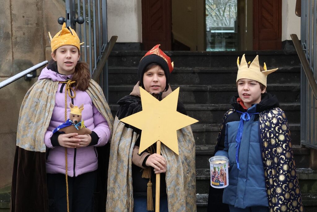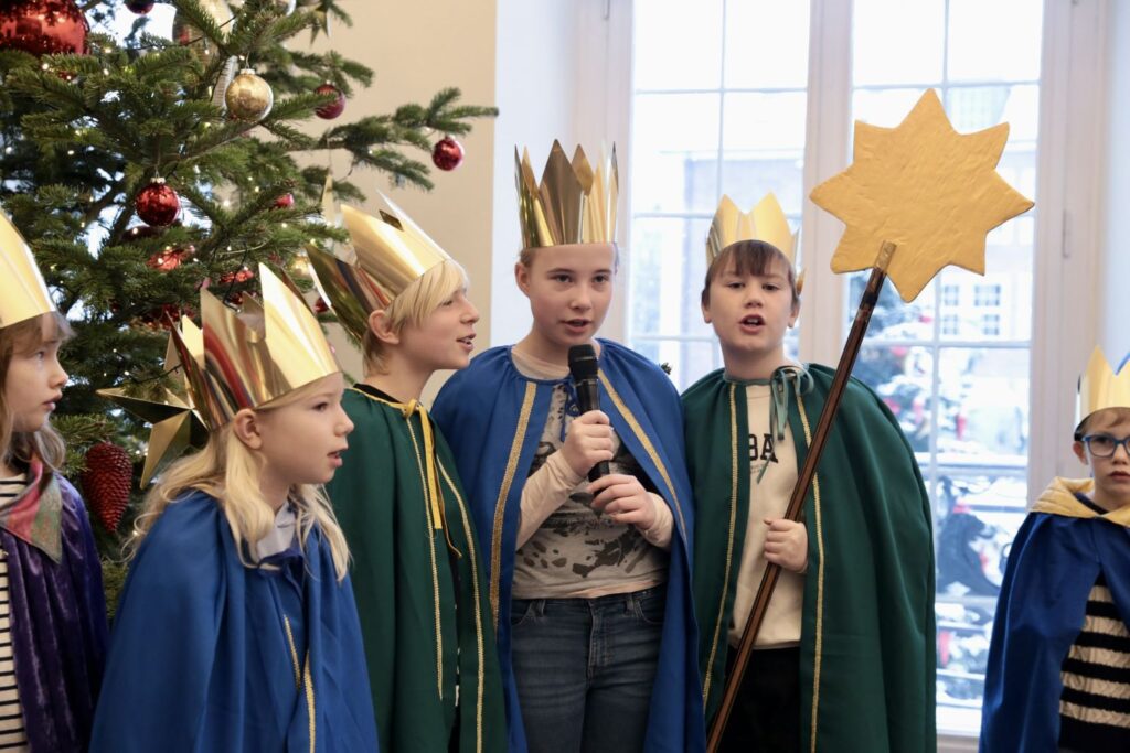 Am Montag und Dienstag (5. und 6. Januar) zogen die Königinnen und Könige der Pfarrei St. Martin mit ihrer frohen Botschaft zu den Menschen. Dabei standen auch das Martinus-Krankenhaus, Seniorenheime, Kindergärten und auch Ministerien auf ihrem Plan. Neben Gesang berichteten sie bei ihren Besuchen auch wofür sie Spenden sammeln. Das Leitwort der 68. Aktion Dreikönigssingen heißt „Schule statt Fabrik – Sternsingen gegen Kinderarbeit“. Die Beispielprojekte liegen in Bangladesch. Die Besonderheit in diesem Stadtteil ist, dass die Kinder ihre Segenwünsche auch in Gebärdensprache vortragen.