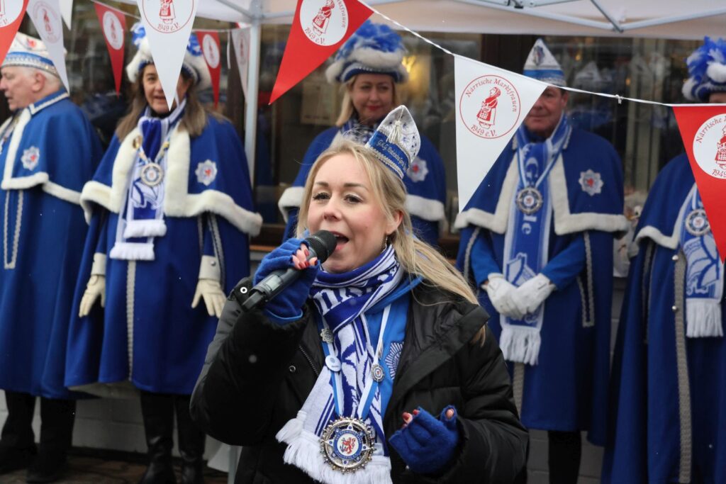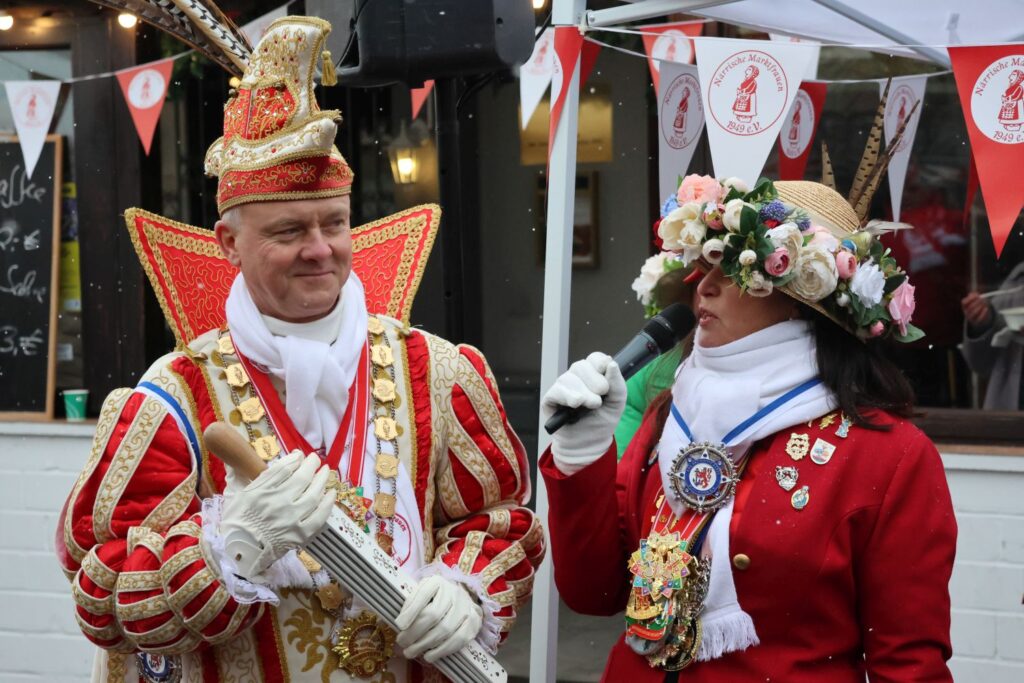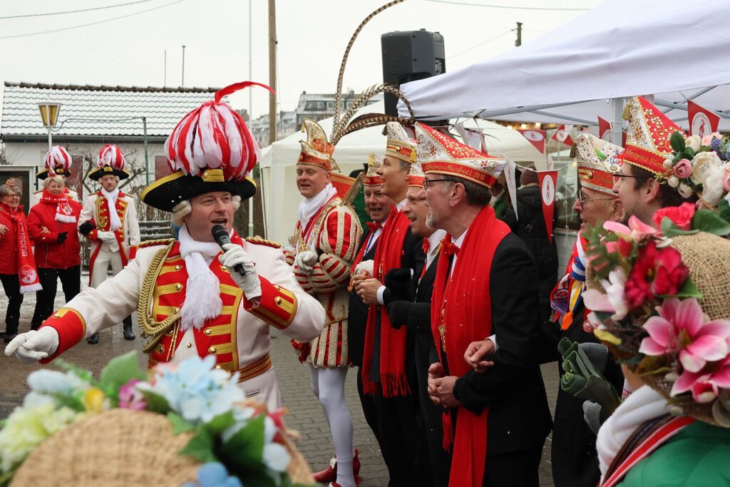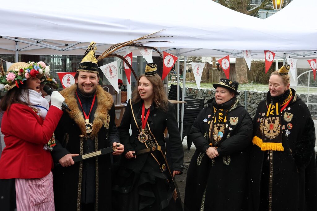 Zahlreiche Tollitäten besuchten das Biwak: das Prinzenpaar von Gemeinsam Jeck, das Prinzenpaar der Stadt Düsseldorf, das Burggrafenpaar der Nordlichter, das Kinderprinzenpaar der 11 Pille aus Angermund, das Dreigestirn der Närrischen Schmetterlinge, der Quatschkopp aus Reisholz – Angie ist auch eine Närrische Marktfrau und das Schlossgrafenpaar aus Benrath.