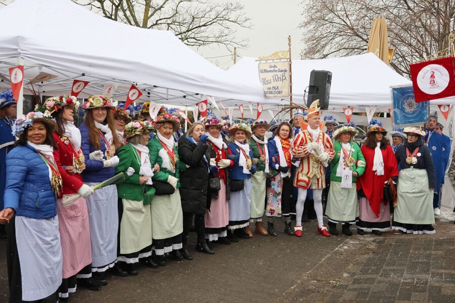 Düsseldorf: Närrische Marktfrauen tanzen sich bei ihrem Biwak warm