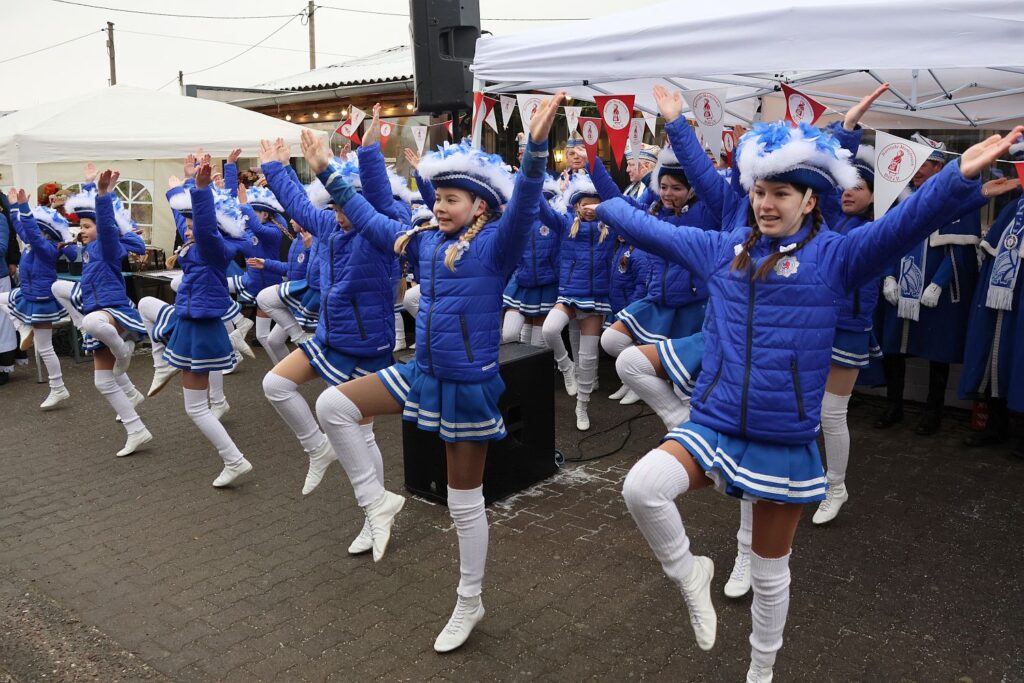 Die Tänzerinnen der Rhenischen Garde schreckten auch die Temperaturen um Null Grad nicht