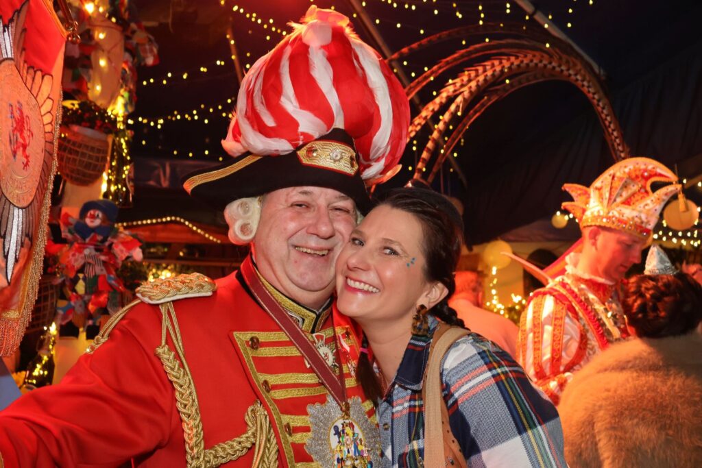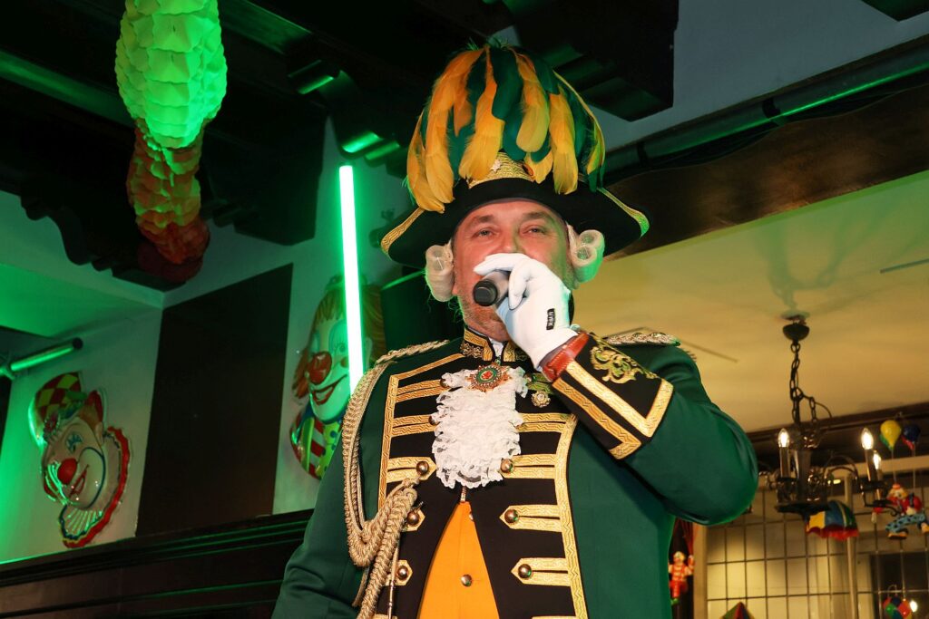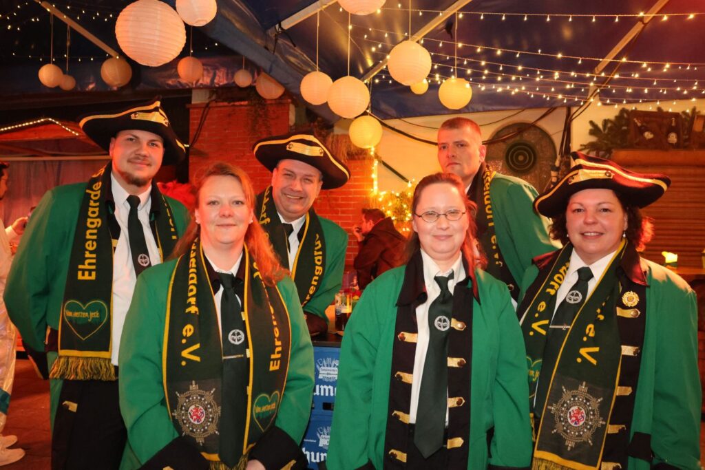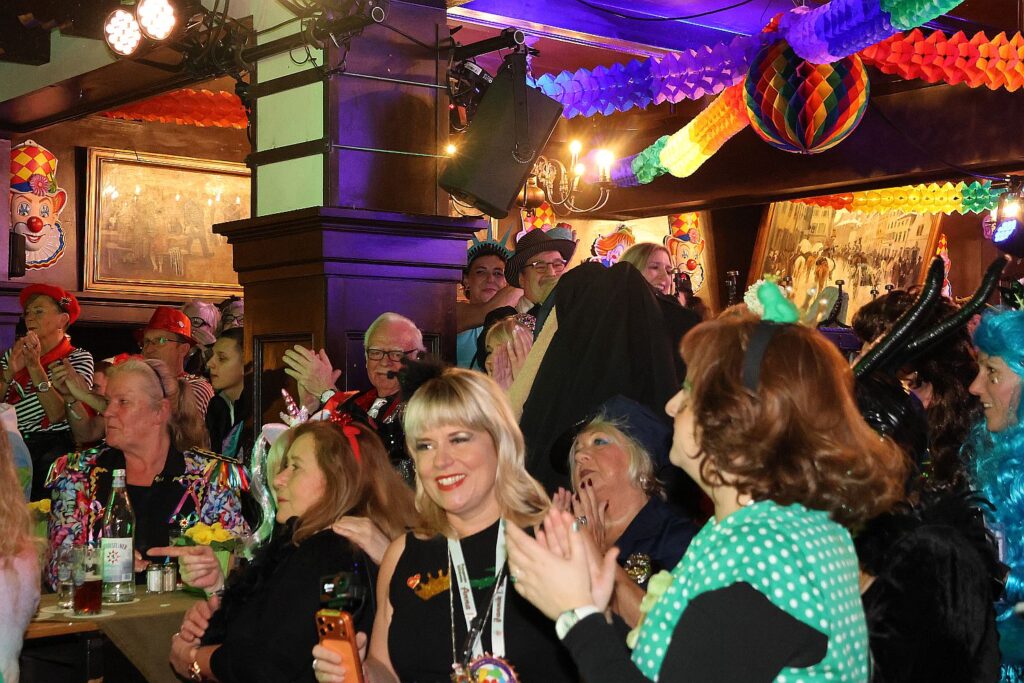 Für die Blitzparty der Ehrengarde hatte das Team der Zugleitung ihre Wagenbauhalle verlassen und die Arbeit für einen Abend vergessen. Gemeinsam mit vielen anderen Jecken feierten sie bei ausgelassener Stimmung und buntem Programm im Schumacher an der Oststraße.