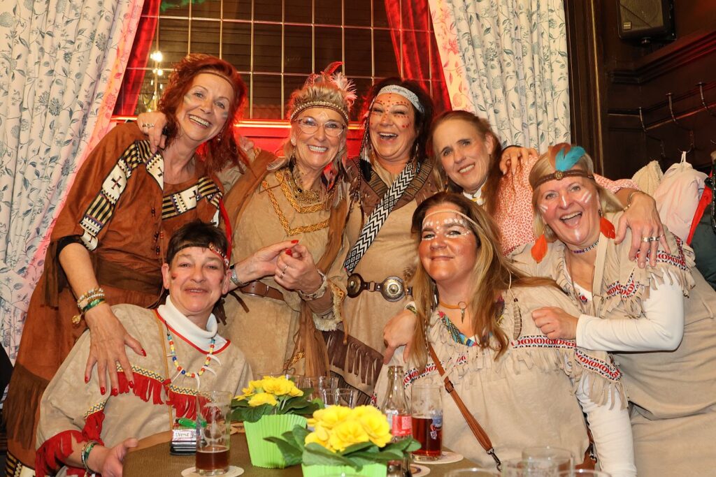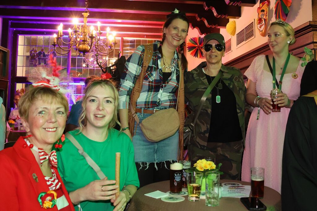 Für die Blitzparty der Ehrengarde hatte das Team der Zugleitung ihre Wagenbauhalle verlassen und die Arbeit für einen Abend vergessen. Gemeinsam mit vielen anderen Jecken feierten sie bei ausgelassener Stimmung und buntem Programm im Schumacher an der Oststraße.