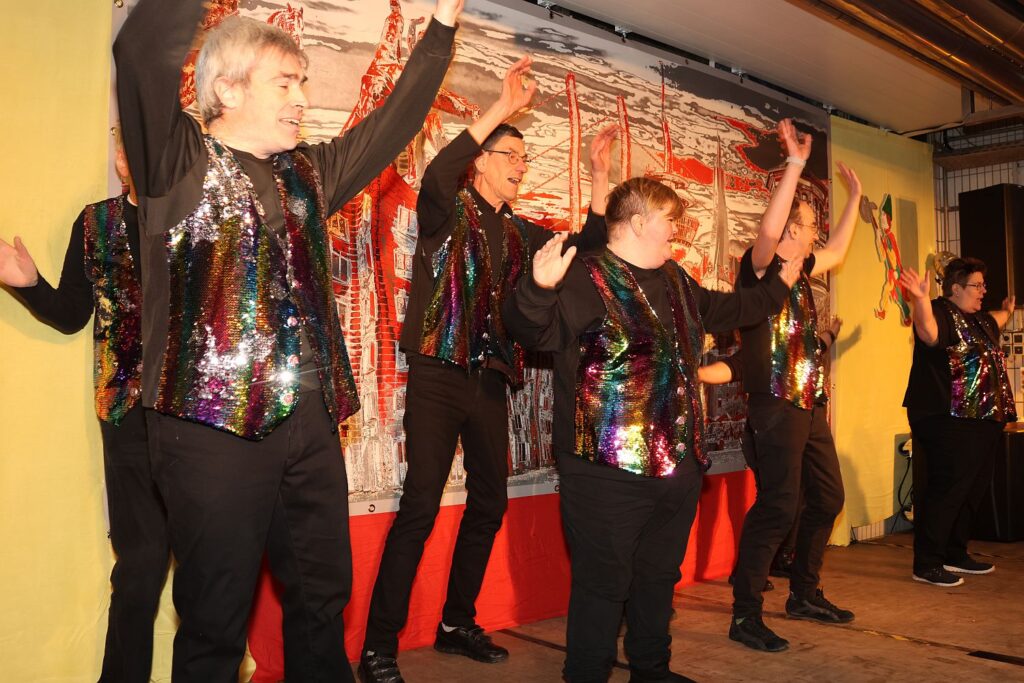 Anschließend wurde die Bühne etwas voller: die Jecken Dancer der KG Gemeinsam Jeck rockten die Schwankhalle im Schumacher, denn es wurde nicht nur auf der Bühne getanzt. Doch wer dachte, dass man sich anschließend ausruhen konnte, der kannte Rainer Lieverscheidt nicht. Mit seinen Lieder zog spontan eine Polonaise und wer dort nicht mit wollte, tanzte und schunkelte am Platz.