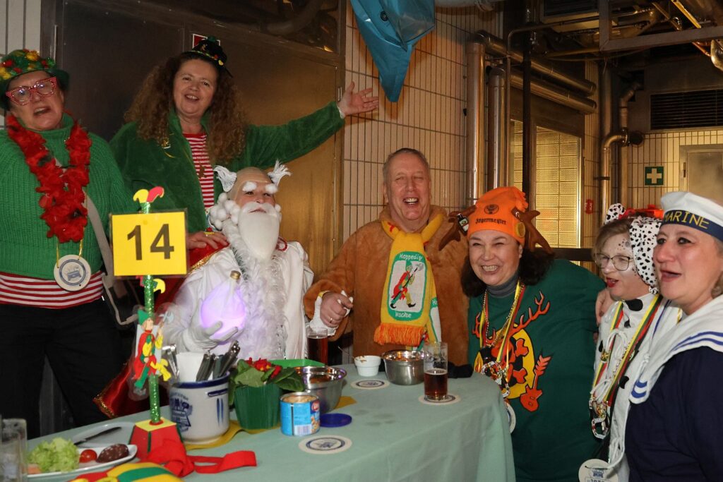 Da kam die Pause – ohne Wildschweinbraten – aber mit leckerer Hausmannskost gerade recht. Zeit sich nach dem Essen auszuruhen gab es nicht, denn die Swinging Funfares brachten den Raum zum kochen. Die Gäste der Hoppediz-Wache sind dafür bekannt, dass sie auch bei Rednern zuhören können, was im Karneval längst nicht selbstverständlich ist. Kabarettist Peter Vollmer kam bestens an und verschaffte auch eine kleine Ruhepause, da bei Jeck United und der Hermes Band wieder tanzen und schunkeln angesagt war. Die Tanzgruppe Hoppedötze der Großen Erkrather Karnevalsgesellschaft komplettierte das Programm und präsentierte Tänze. Natürlich durfte auch das Prinzenpaar der Stadt Düsseldorf nicht fehlen.