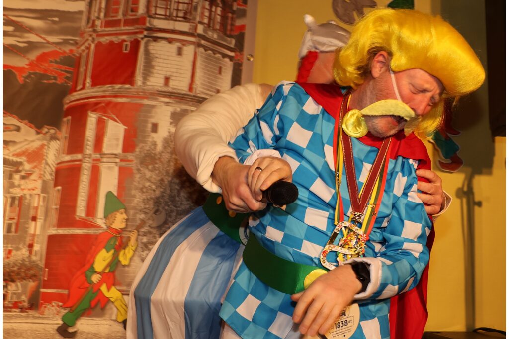 Denn ganzen Abend über versuchte Obelix an Zaubertrank zu kommen, aber Asterix passte auf. Beide gemeinsam kümmerten sich auch darum, dass Troubadix nicht das Mikrofon in die Hand bekam – sehr zur Freude der Gäste.