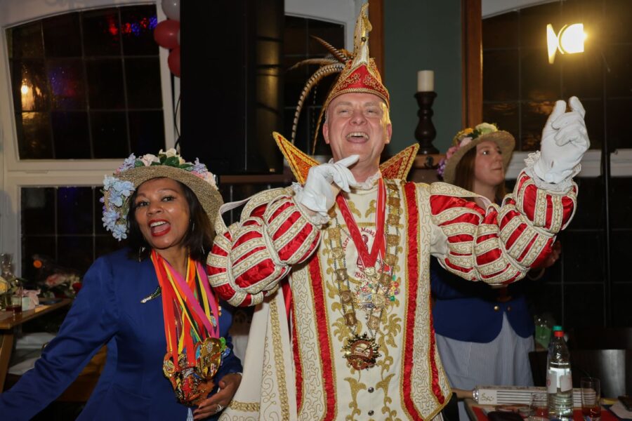 In der Jubiläumssession begleitet Sellerieprinz Christoph I. die Marktfrauen, zu denen auch seine Frau gehört. Im Goldenen Ring sorgten die Marktfrauen gemeinsam mit ihm für eine tollen Auftritt. Mit den Swining Funfares zog rasch die erste Polonaise des Abends durch den Saal und es sollte nicht die letzte bleiben, denn auch bei den Liedern von Heinz Hülshoff hielt es kaum jemanden auf den Stühlen.